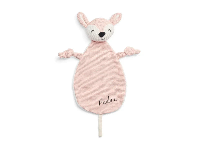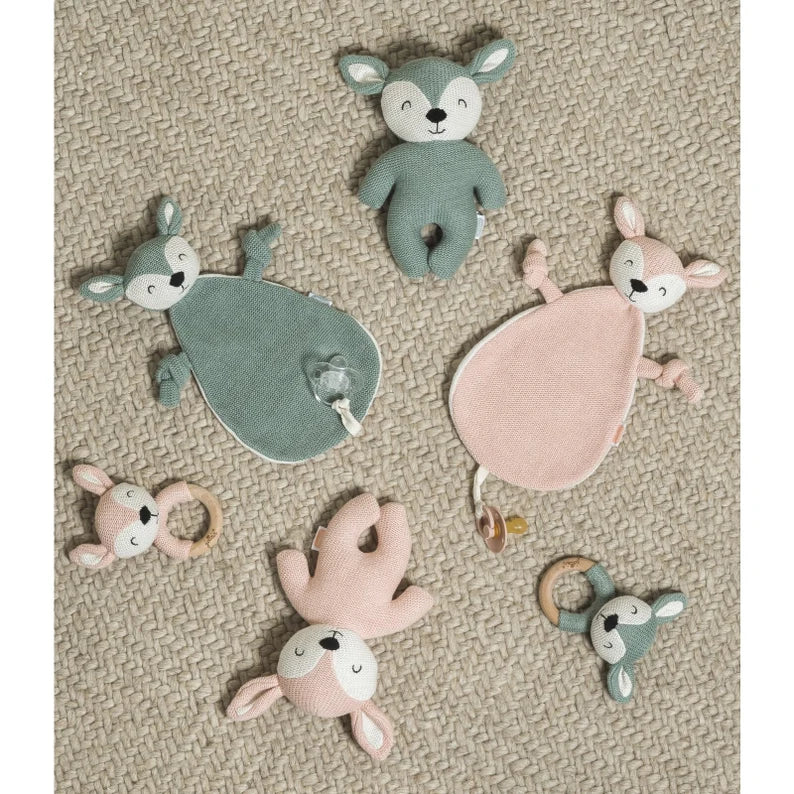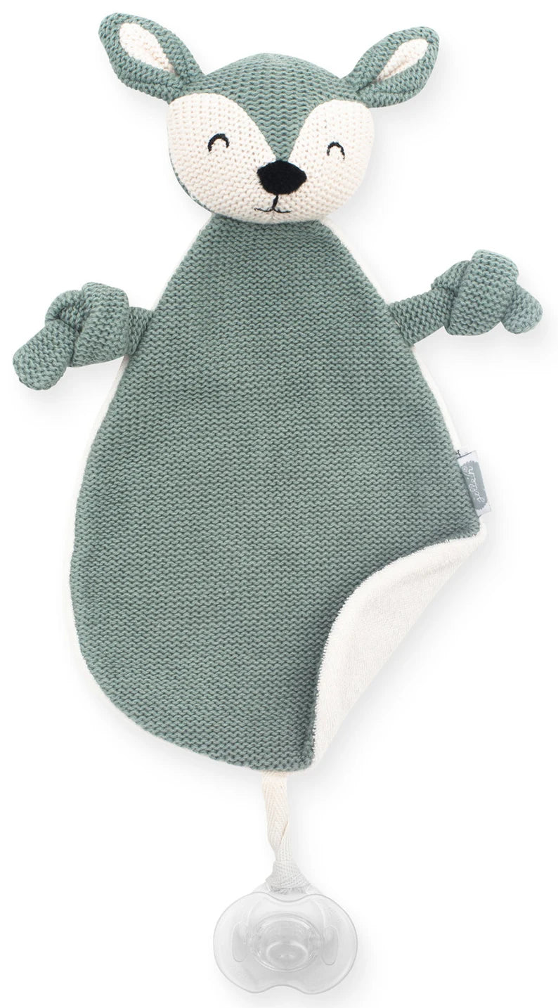 Das Schmusetuch hat ein süßes Hirschgesicht und ist aus weichem Material, mit dem dein Kind kuscheln und schmusen kann. Die Vorder- und Rückseite des Tuchs sind von Stoff und Struktur her unterschiedlich. Das ist interessantes Lernmaterial für dein Baby. Dank der Schlaufe kannst du das Tuch ganz einfach am Schnuller befestigen.