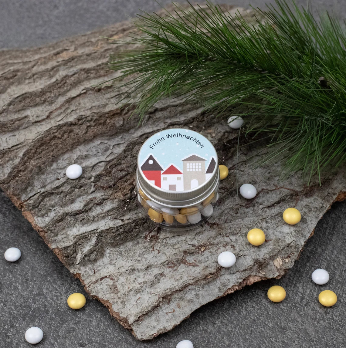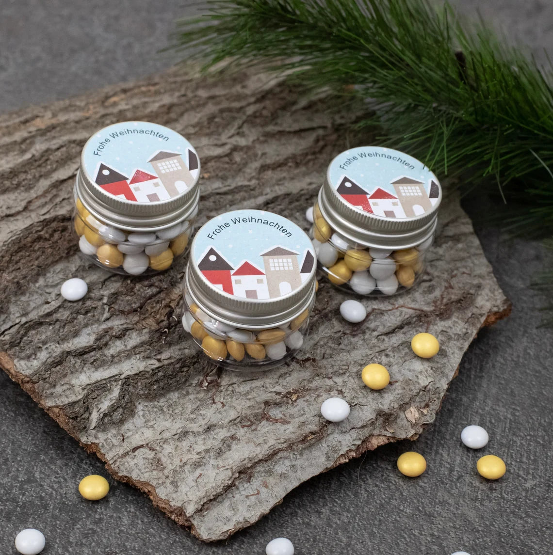 Perfekt für die Vorweihnachtszeit oder Weihnachten: Unsere Vintage-Döschen sind gefüllt mit leckeren Schokolinsen und können nach deinen Wunschfarben gestaltet werden. Ob einfarbig oder gemischt, so passt dein Gastgeschenk perfekt zu deinem Fest!