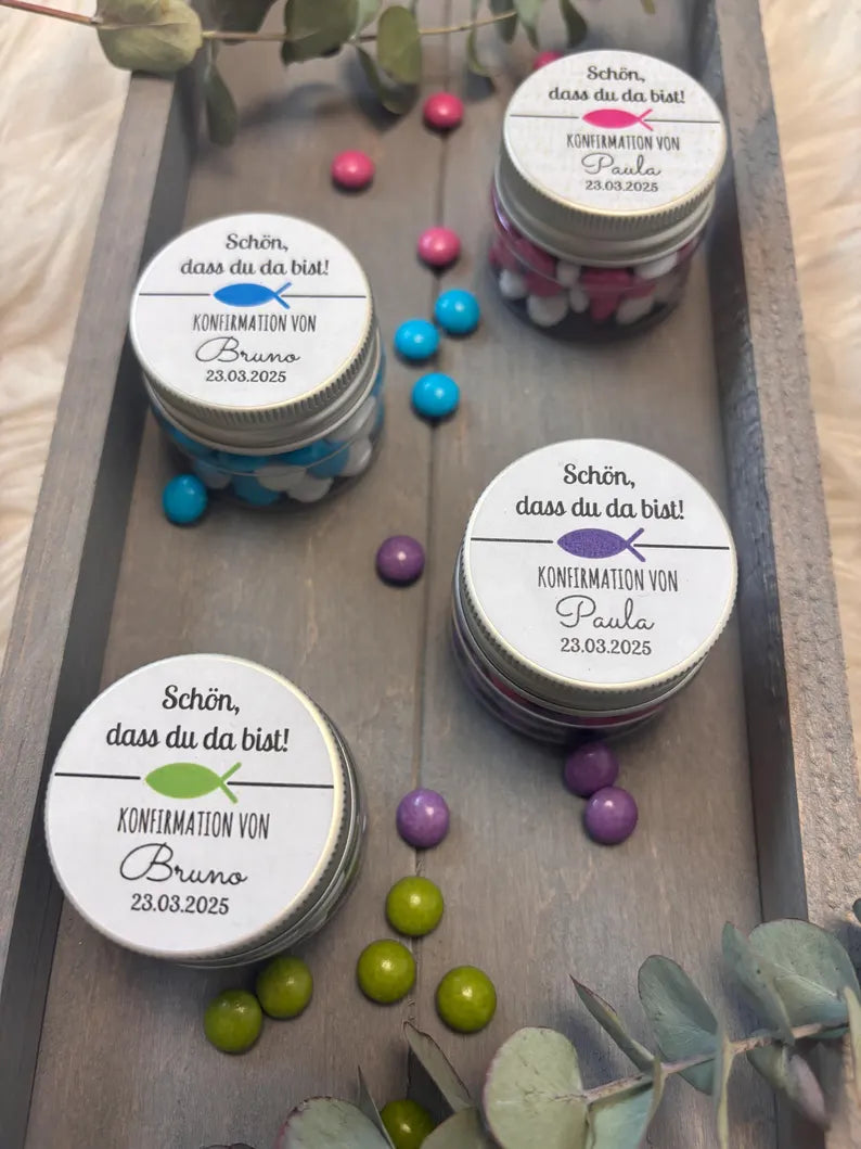 Macht eure Taufe, Kommunion, Konfirmation oder jedes andere Fest unvergesslich – mit diesen süßen Mini-Döschen, die mit einem liebevollen „Schön, dass du da bist“-Etikett verziert sind! 🎉 Gefüllt mit bunten Schokolinsen 🍬 sind sie das perfekte Gastgeschenk für eure besonderen Momente. 🎁