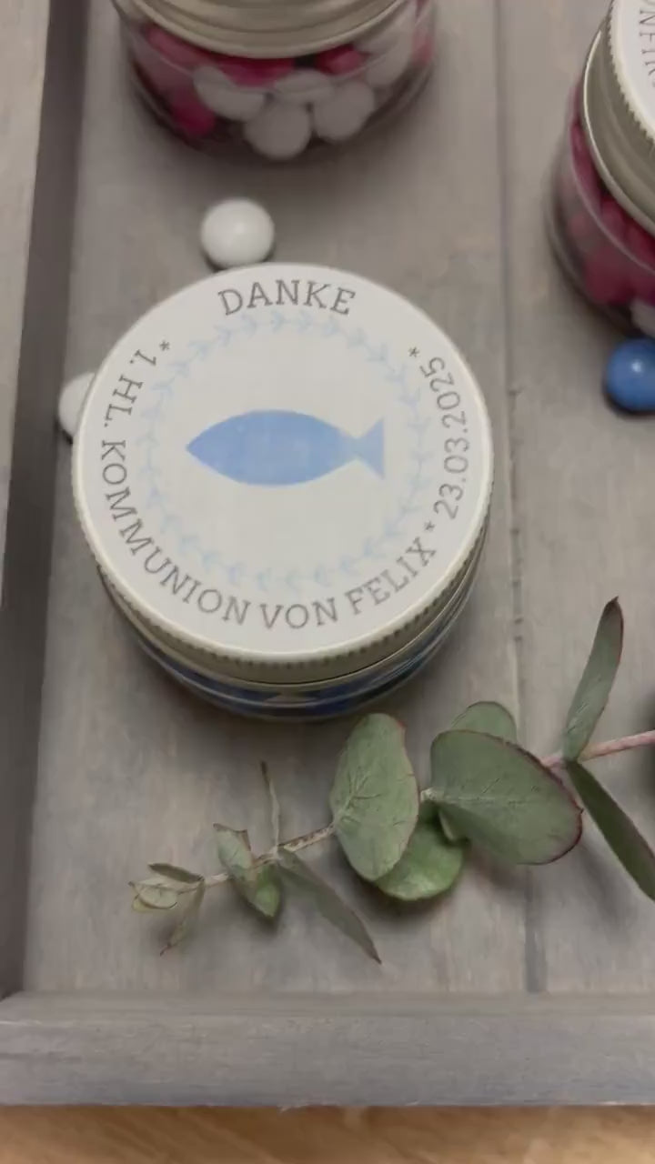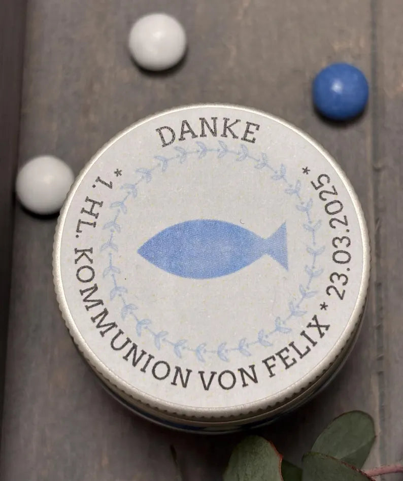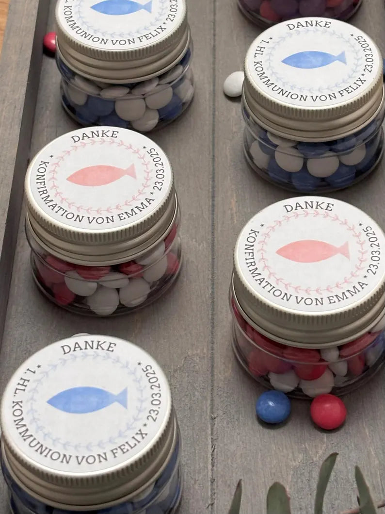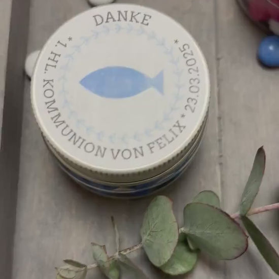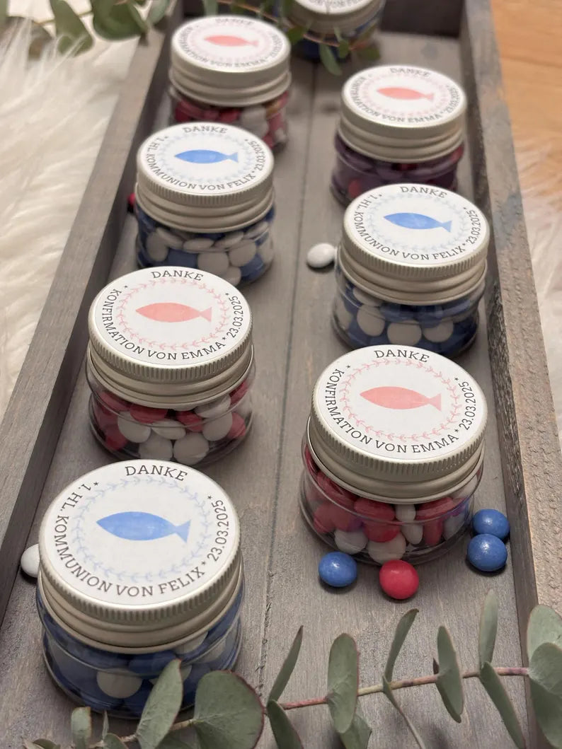 🐟✨ Süßer Segen – personalisiertes Gastgeschenk mit Schokolinsen & Fischsymbol ✨🐟