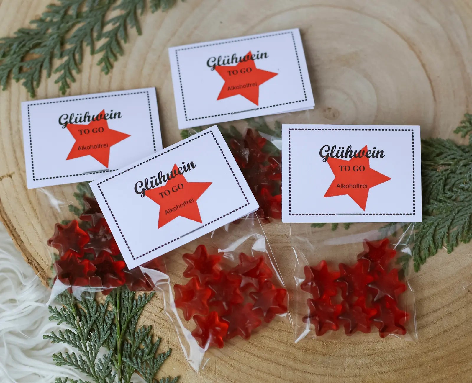 Für die Vorweihnachtszeit oder als kleines Geschenk zu Weihnachten, unser Glühwein to go sorgt für festliche Stimmung! 🎅✨ In jedem kleinen Tütchen findest du alkoholfreien Glühwein in Form von leckeren Glühweinsternen (Fruchtgummi) 🍬 Ein himmlischer Genuss für alle, die es gerne warm und winterlich mögen, aber ohne Alkohol. 🍷❌
