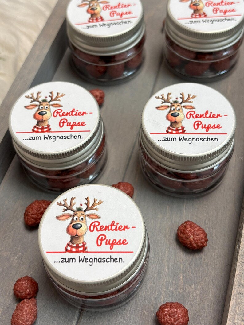 🦌💨 Rentierpupse: Karamellisierte Erdnüsse im festlichen Döschen für gute Laune 🎄