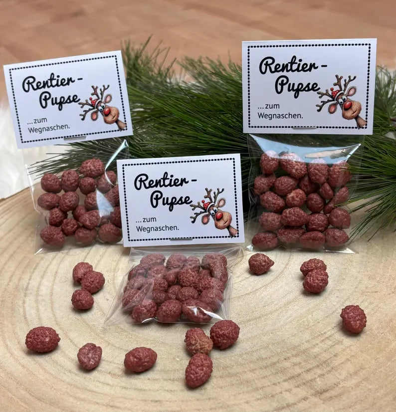 Überrascht eure Liebsten, Gäste, Geschäftspartner oder Kunden dieses Jahr mit einem humorvollen und dennoch stilvollen Geschenk: Rentierpupse im Tütchen! 🤭🐿️