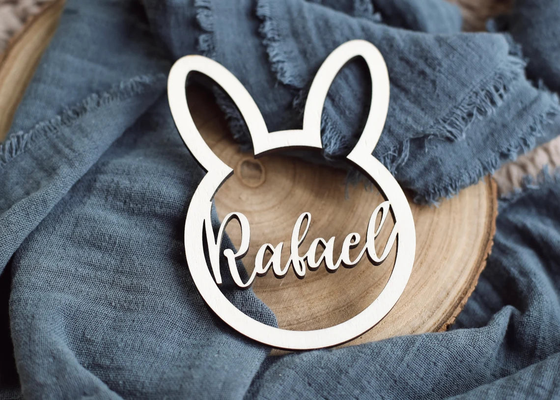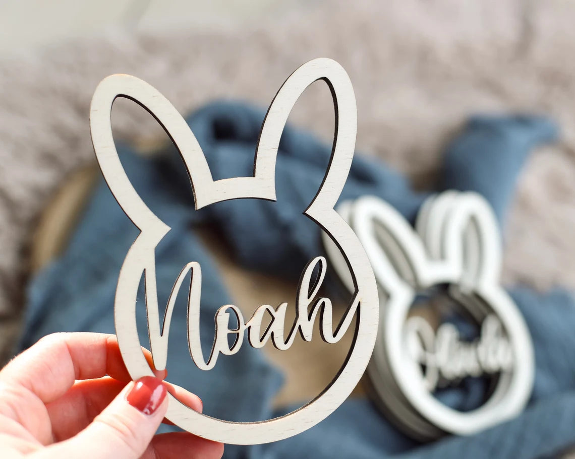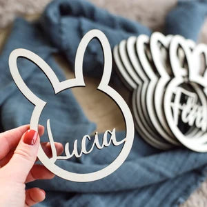 🐰 Personalisierter Osterhasenkopf aus Holz – Mit deinem Namen veredelt 🌸