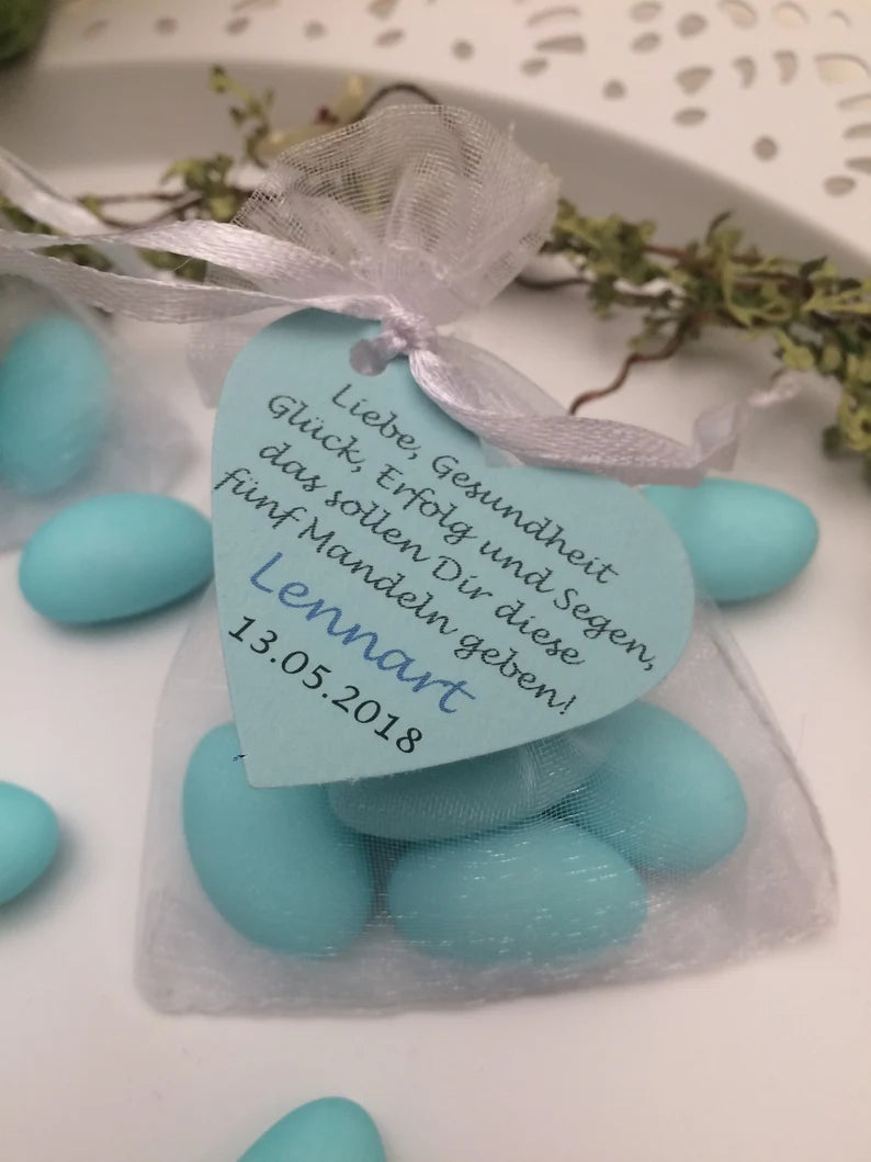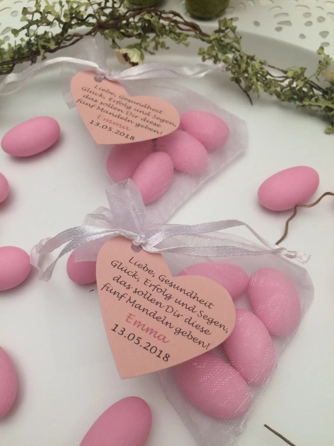 🎁 Traditionelle Gastgeschenke – 5 Zuckermandeln im Organzasäckchen 🌸