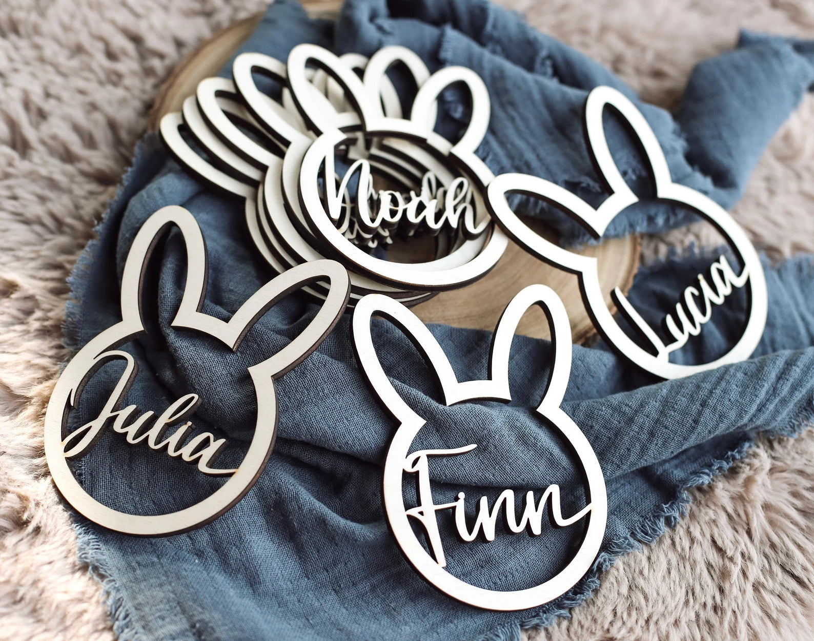 Perfekt für die bevorstehende Osterzeit: Unsere süßen Osterhasenköpfe aus Holz kannst du mit deinem Wunschname personalisieren! Verschönere damit deine Ostertafel oder verleihe deinen Ostergeschenken eine persönliche Note.