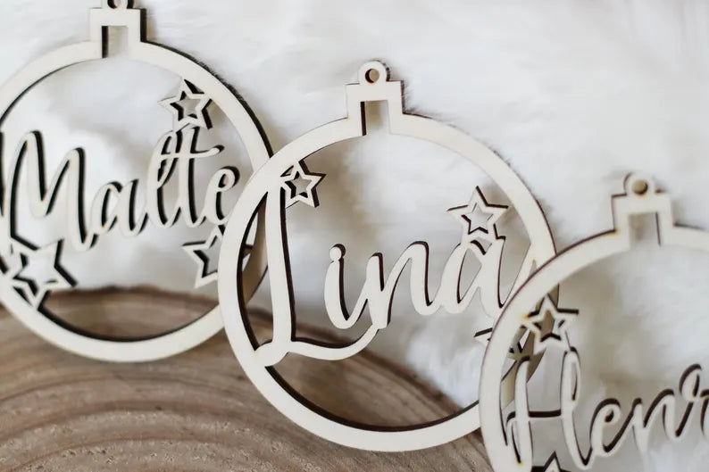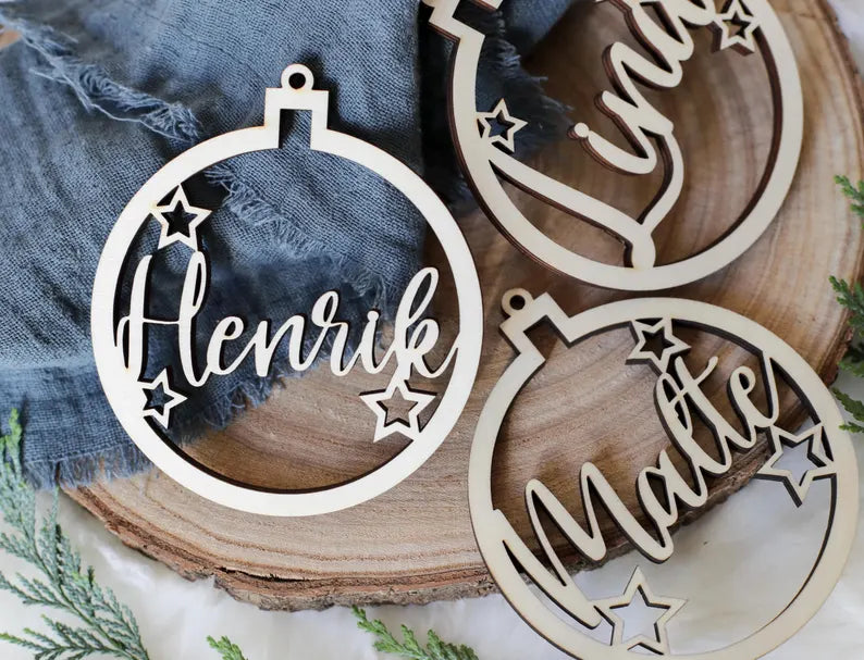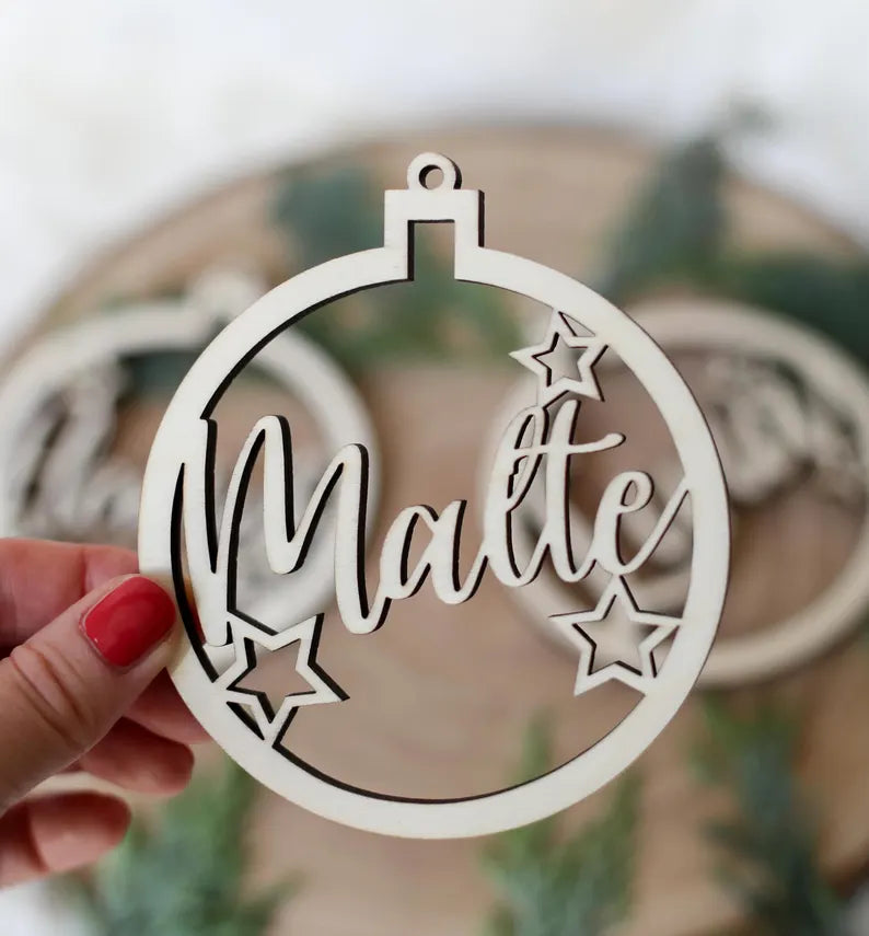 Mach dein Fest dieses Jahr noch persönlicher! Mit unserer individuell gravierten Holz-Christbaumkugel bringst du echte Weihnachtsstimmung an den Baum, aufs Geschenk oder direkt an den Festtisch. Jeder Anhänger wird liebevoll aus Naturholz gefertigt und mit deinem Wunschnamen veredelt – einzigartig, nachhaltig & voller Charme.