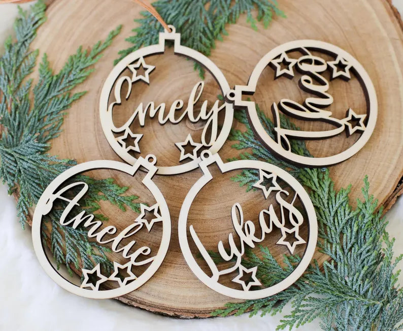 🎄 Personalisierte Holz-Christbaumkugel – Dein Name, dein Weihnachtszauber ✨