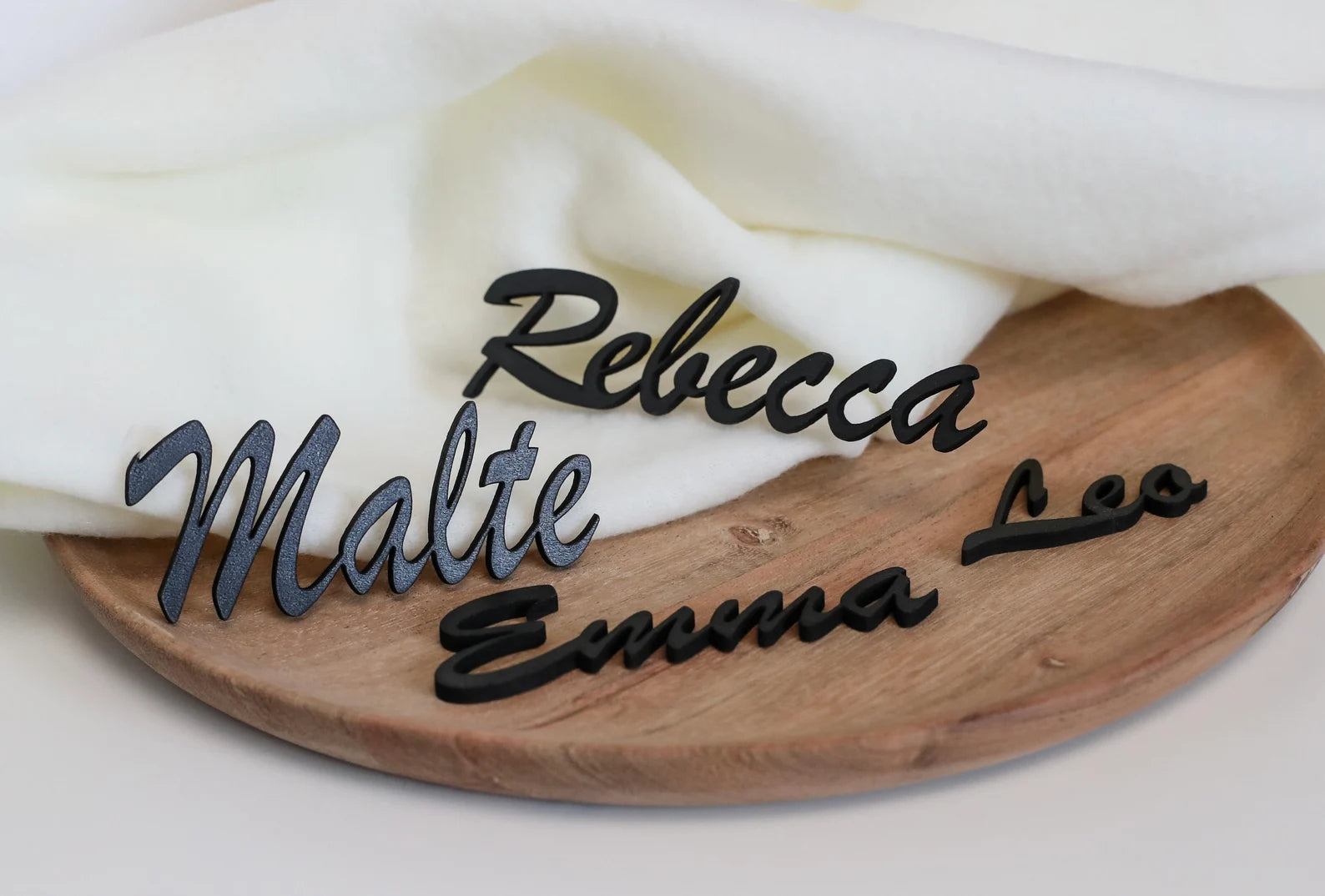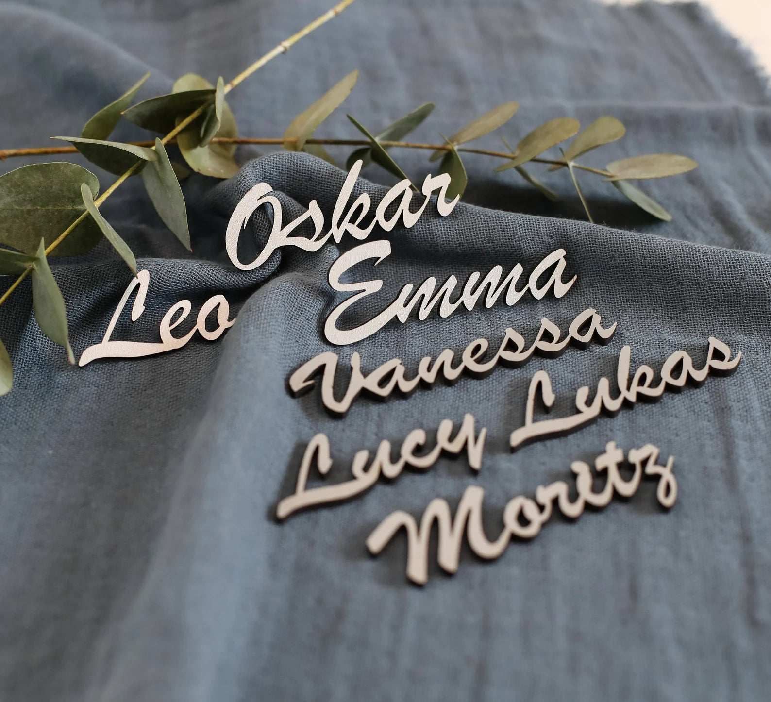 Unsere liebevoll gefertigten Holzschriftzüge sind die perfekte Ergänzung für eure Hochzeitsdekoration oder jedes andere Fest. Jeder Schriftzug wird aus hochwertigem Holz individuell mit dem Namen eures Gastes personalisiert – elegant, zeitlos und handgefertigt.