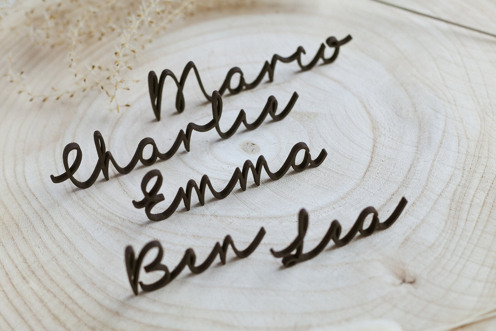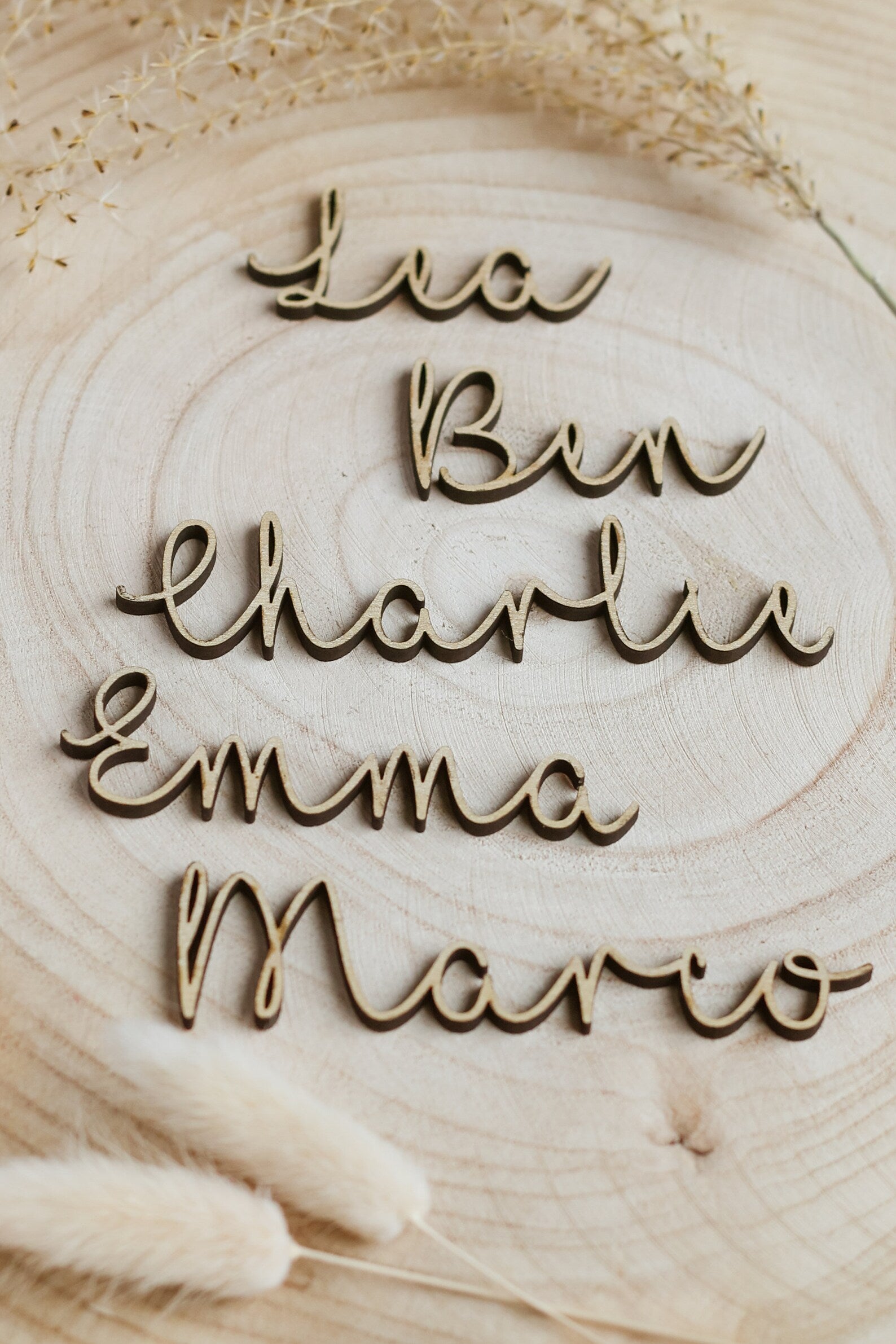 Personalisierte Holzschriftzüge für Hochzeitsplatzkarten – Elegant & individuell 💍🌿
